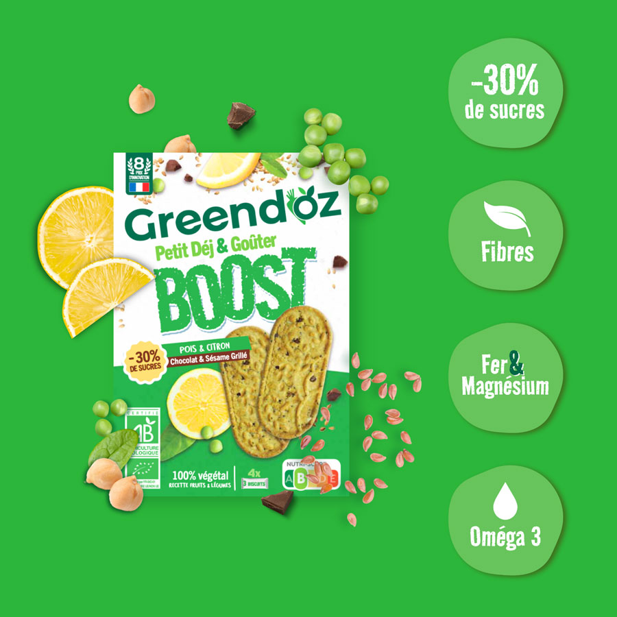 Avec 30% de sucres en moins* mais des nutriments en plus, c’est le biscuit parfait pour être en forme après le petit-déjeuner et le goûter, idéal avec du lait végétal une compote de pomme.