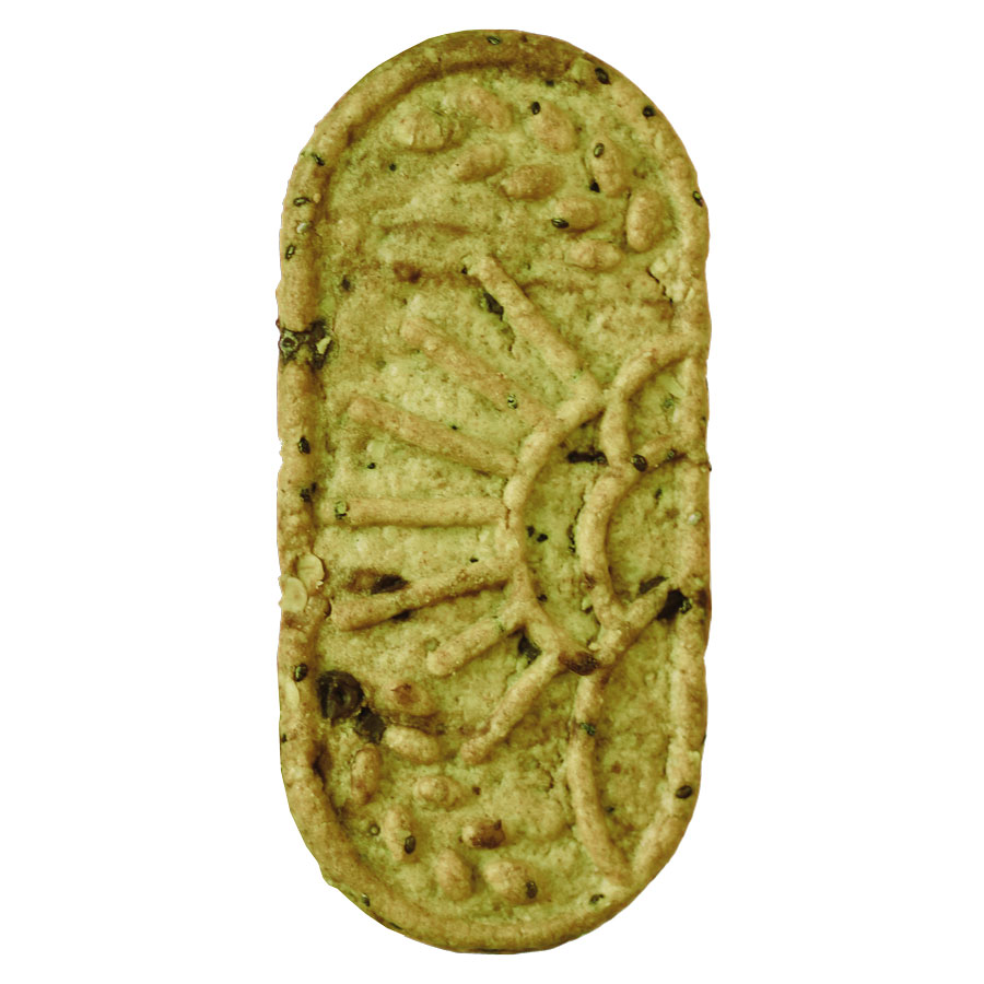 Farines de BLÉ* (T65 et T110) ; farines de légumes* et légumineuses* 16% (farine de pois verts* 7%, farine de pois chiche* 5%, poudre d’épinards*, farine de sarrasin*, farine de lin*, farine de pois jaunes* 1%) ; huile de colza* ; sucre de canne*; flocons d’AVOINE* ; pépites de chocolat* 8% (masse de cacao*, sucre de canne*, beurre de cacao*, extrait de vanille*) ; graines* 6,5% (SÉSAME* 2,3%, kasha*, chia*(Salvia hispanica)) ; poudre à lever : carbonates d’ammonium et carbonates de sodium ; arôme naturel de citron* 0,4% ; thé vert*; poudre d’écorce de citron* 0,1% ; sel.