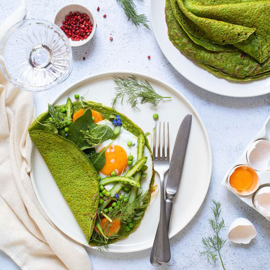 Découvrez notre préparation Super’Crêpes SANS GLUTEN à base de farine d’épinard et de légumineuses!