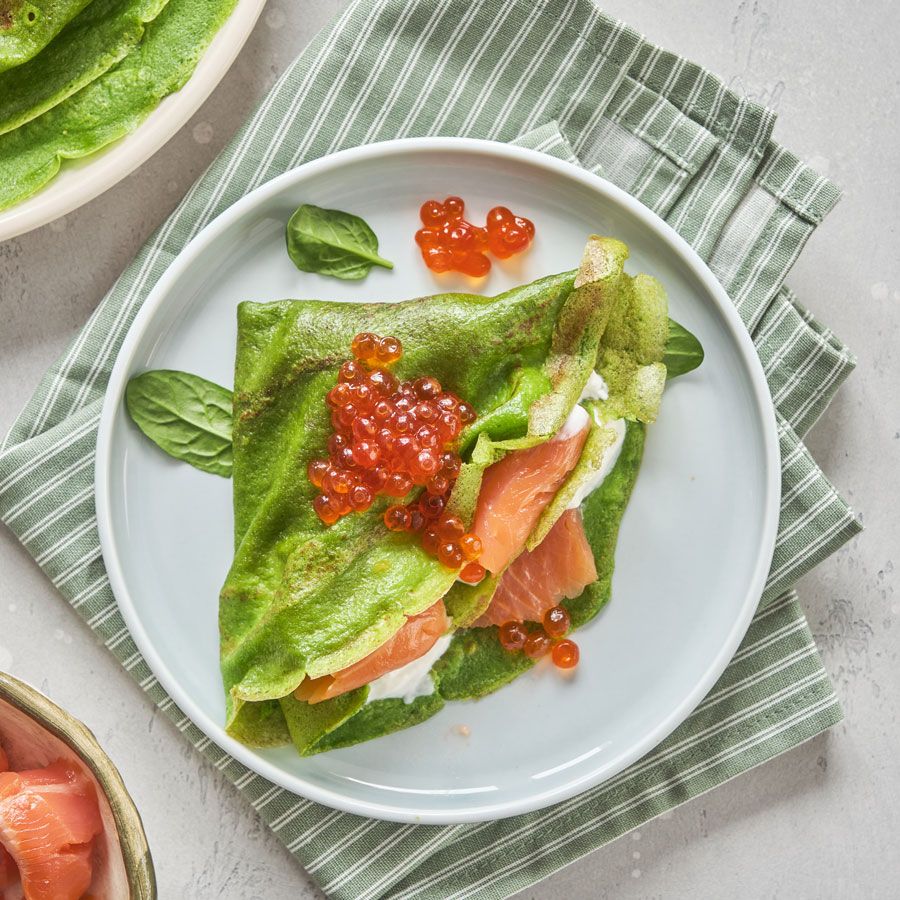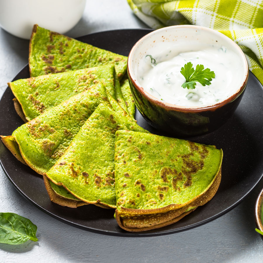 Préparation de crêpes SANS GLUTEN à base d’épinard au goût subtil, sans gluten